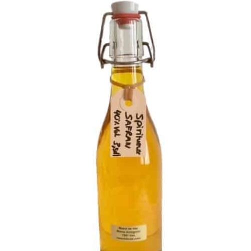 Spiritueux artisanal de Safran produit avec du safran iranien macérés dans de l’eau-de-vie avec un léger rajout de sucre. 40% de volume d’alcool. Ce spiritueux accompagne parfaitement le café et est excellent sur un magret de canard ou un fromage de chèvre chaud par exemple.